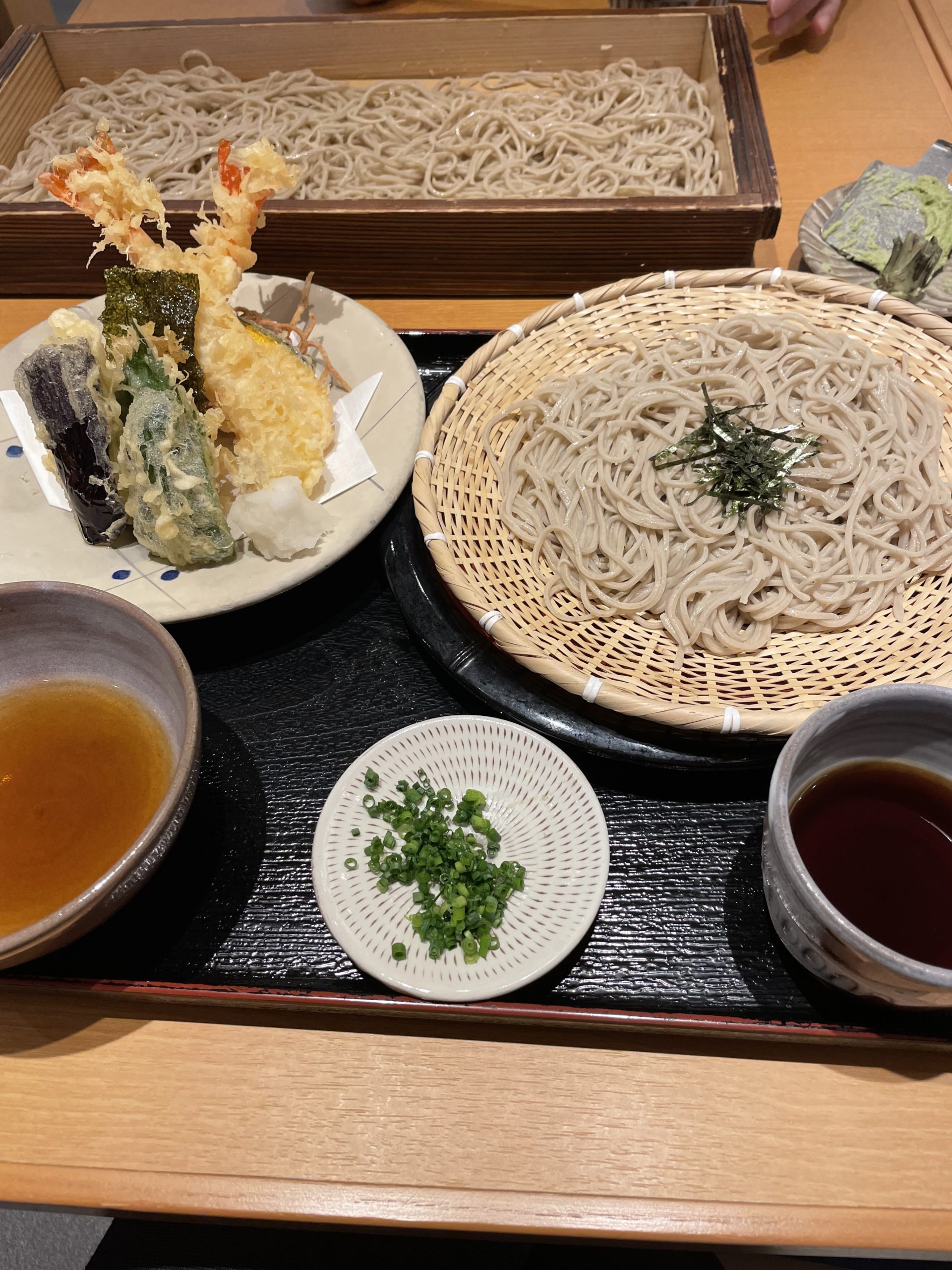オットは板蕎麦(三人前のざる蕎麦)私は天ぷらそば